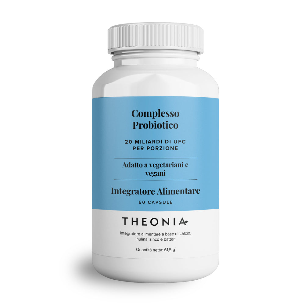 Qui a Theonia riteniamo che la qualità sia più importante della quantità, ed è per questo che il nostro Complesso Probiotico contiene solo ceppi batterici di altissima qualità in dosi raccomandate da professionisti. Ogni porzione contiene 20 miliardi di CFU di 7 ceppi probiotici la cui efficacia è stata clinicamente dimostrata.